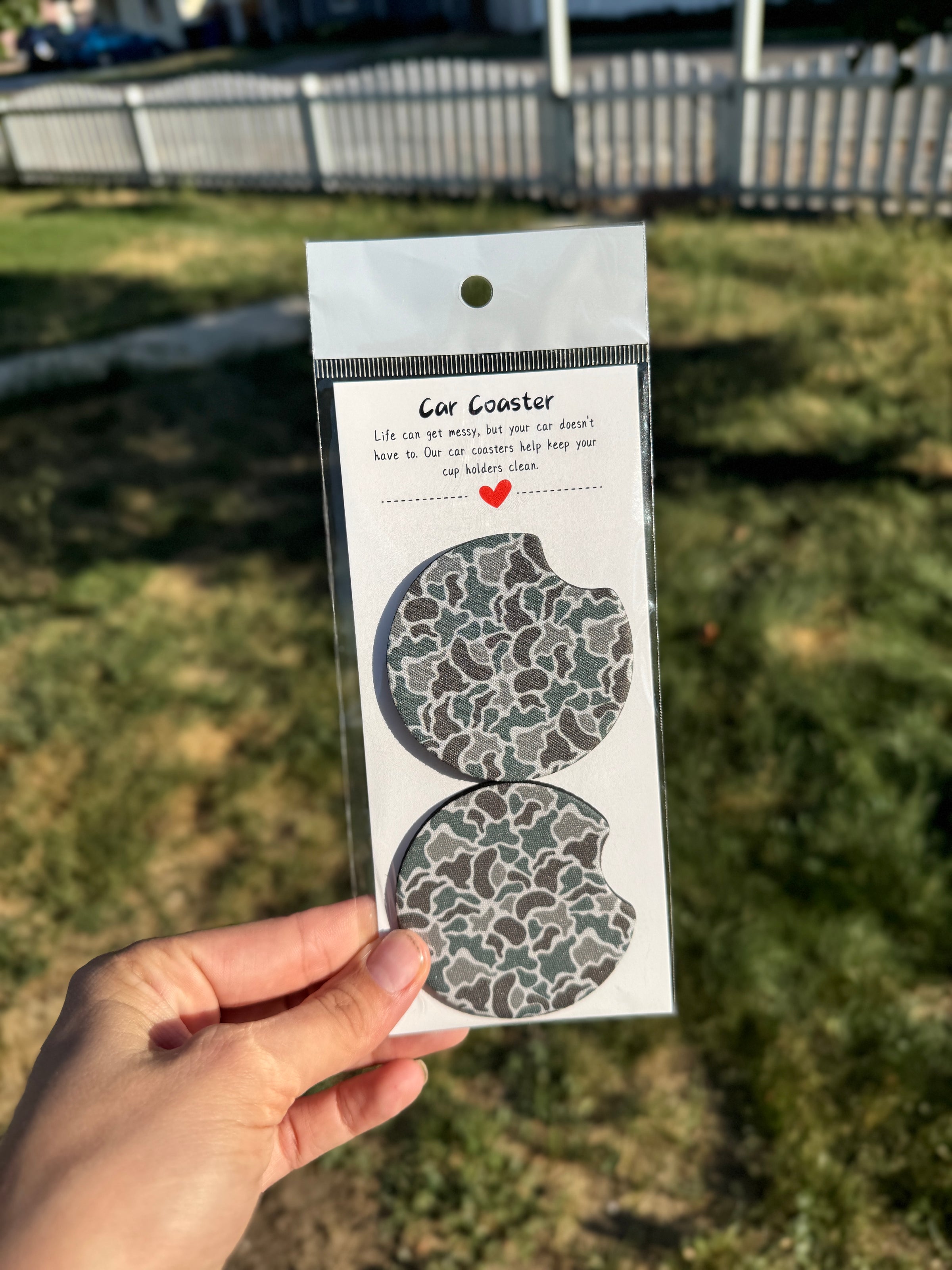 Bring a bold touch to your ride with our trendy camo car coasters! Made with soft, flexible polyester and a grippy rubber bottom, they’re a super cute and functional addition to your vehicle.